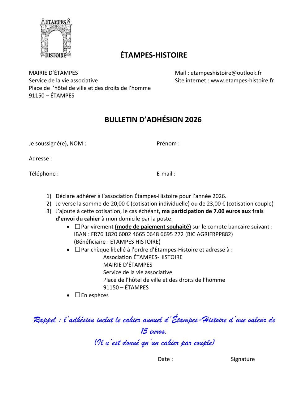 Les subventions aux associations se réduisant d'année en année, notre principale source de financement est maintenant vos adhésions. Vous pouvez nous soutenir en téléchargeant le document ci-dessous (cliquer sur l'image) et en le renvoyant après l'avoir rempli :